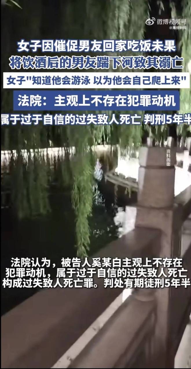一对小情侣半夜在河边喝酒吵架,女生气不过一脚把男友踹进河里,想着“他会游泳,肯定能上来”,转头就走了。结果等她酒醒了回去找,男友早就没影了,最后捞上来的是一具尸体。法院判了女生5年6个月,男方家属哭着说“这跟杀人有啥区别”,可法律上还真不是一回事儿。
