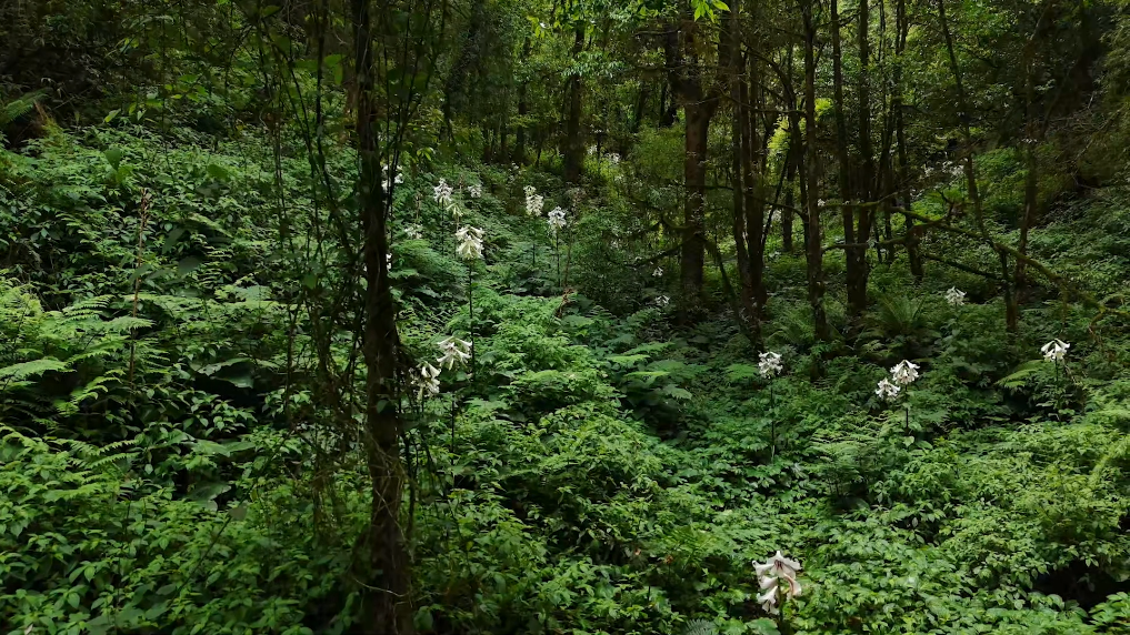 近日,云南省龙陵小黑山省级自然保护区工作人员在原始密林中发现罕见野生云南大百合群落,植株数量超1万株,最大连片分布面积达5亩,最高植株突破3米、单株绽放出16朵花。